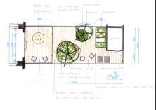In het bovenste ontwerp heb ik daarom de gehele tuin, ook de serre dezelfde